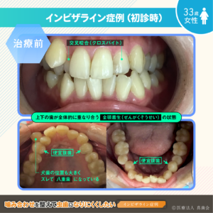 当院の症例を通してインビザラインがどのような歯並びに有効なのか、治療期間はどのくらいかかるのか、費用はどのくらいかかるのかなど、これから矯正を始める方に具体的なイメージをつかんでいただければ幸いです。